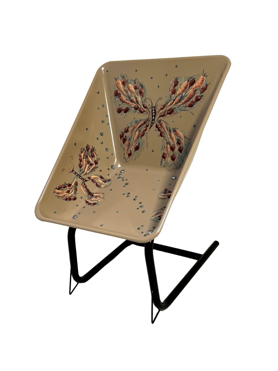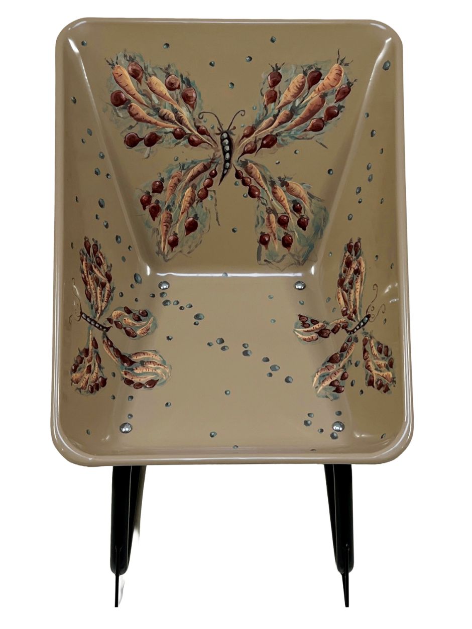 The motif is built as a butterfly – a pollinator. For me it symbolizes everything that moves between soil, plants, and the future, and how small actions can carry something greater forward.